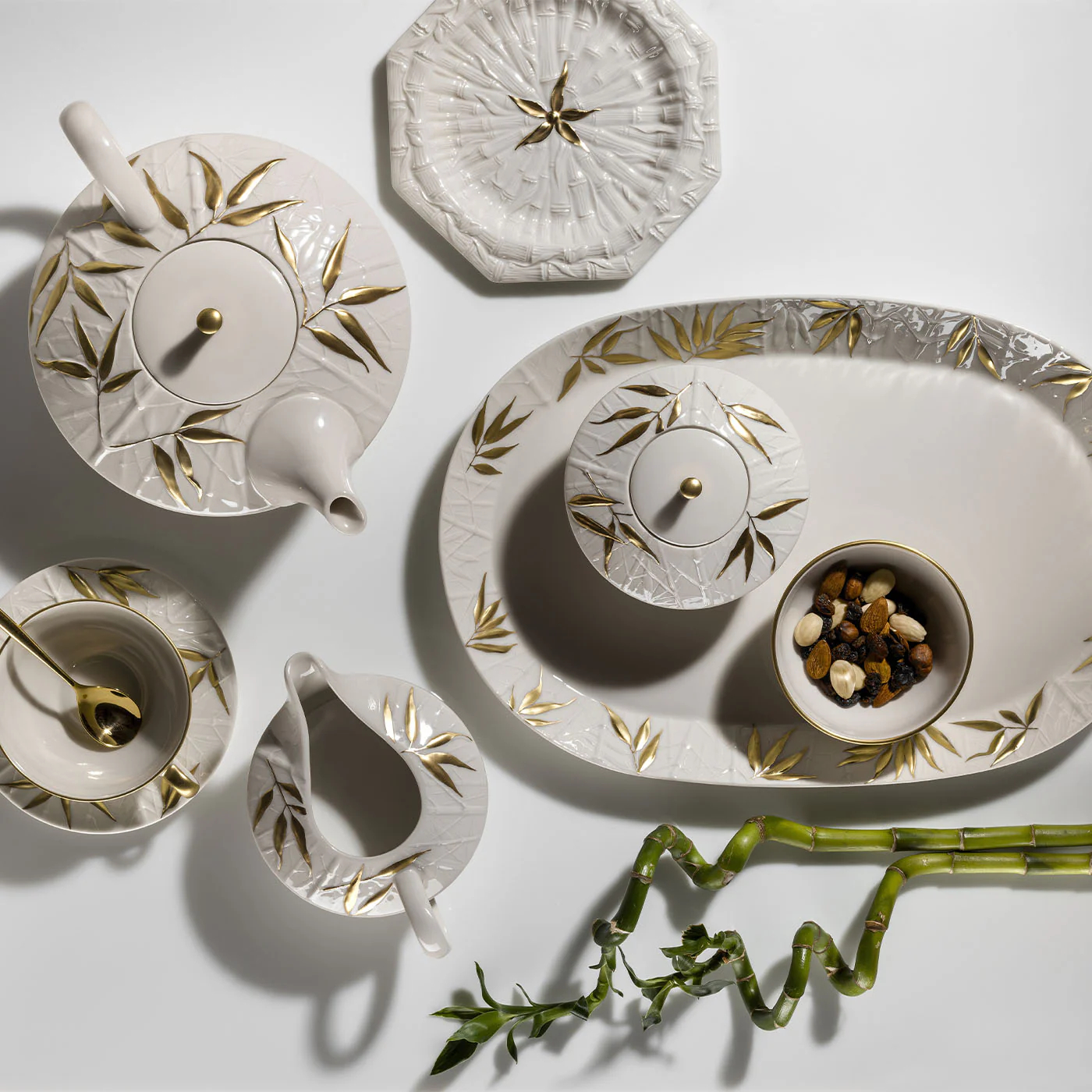 Ceramic Lucky Bamboo Relief White Glazed Teapot/Dinner Plate