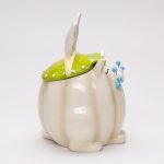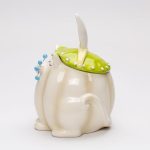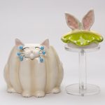 Cosmos Gifts Fine Ceramic Spring Easter Bunny Whiskers Cat Candy Treat Bowl Jar, 6-3/4″ H