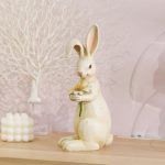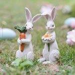 House Studio Easter-Decorations Bunny-Decor Spring-Figurines Table-Centerpiece – 2PC Spring Decorations Resin Rabbits with Carrot and Flower Tabletop Ornaments for Home Farmhouse 4.5H inch