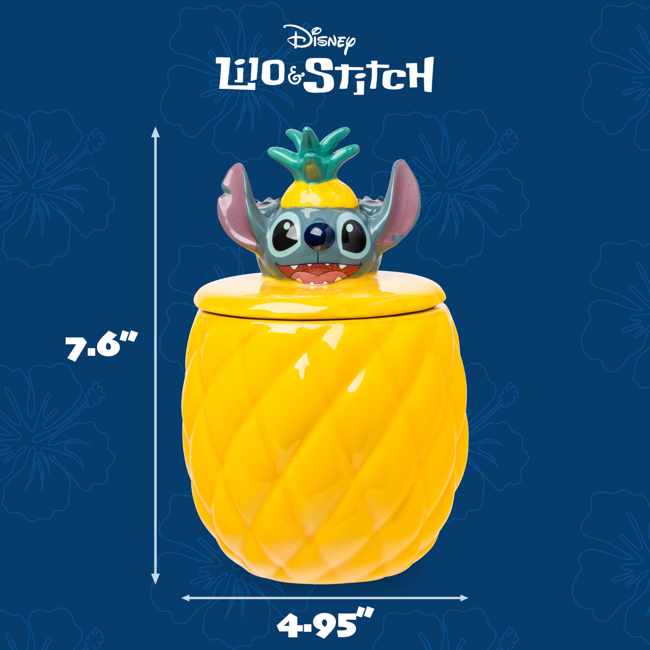 Silver Buffalo Disney Lilo and Stitch Pineapple Tropical 3D Sculpted Ceramic Cookie Snack Candy Jar (Medium)